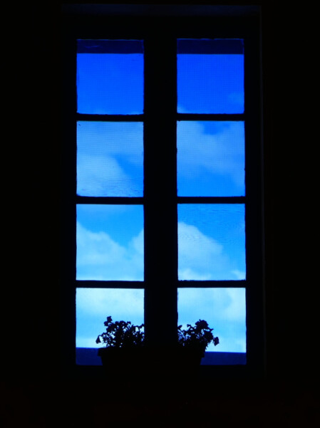 The work functions as a time based art piece that creates 2 separate streams of time that are contrasted by each other. When the day time prevails there is nothing to be seen in the window, but as the sun slowly begins to set – something does then begin to appear. The light changes from daytime to twilight and then to darkness and this of course happens over a slow period of time. This outer lying narrative frames the actual video projection, where we see the passing of time at a different tempo as clouds drift gently past the blue sky. Watching the speed of the clouds and their movement while framed against the real time transition of light to dark makes us realize that such a chance encounter is indeed both natural and un-natural. Artists such as Robert Smithson and also Olafur Eliasson have of course explored such encounters and the ‘subjective nature of reality’ that Wieczorek’s talks about here.
