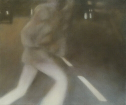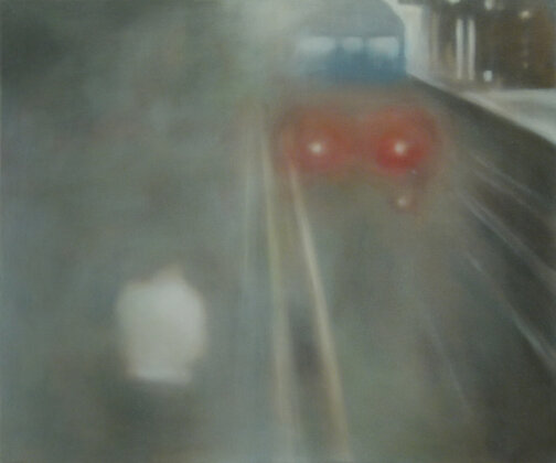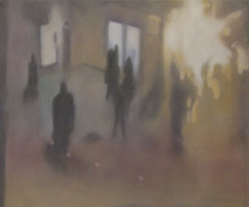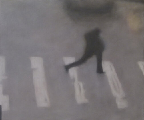 Based on CCTV stills, Closed Circuit continues the exploration of the implications of digital culture and its influence on how we perceive and relate to the world. The works are painted renderings of unrefined thumbnail images provided by static security cameras, complete with poor quality, technical glitches, unusual angles and framing, and unexpected vantage points. Without their original contexts and 'stories', we are left to our own devices to read them as we wish.