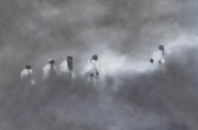 An extended series of paintings based on low resolution reportage images harvested from the internet.