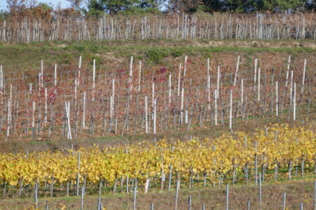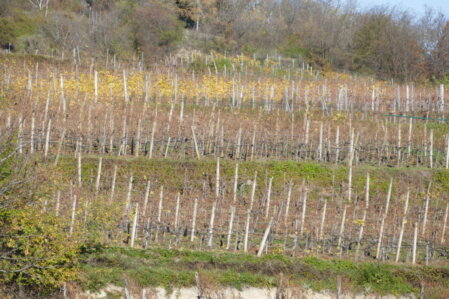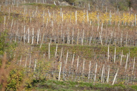 In the autumn vineyards in the hills around Krems, S. Austria (Niederösterreich), the patterns in which the vines are propagated become more visible. In their leafless state, the stakes used to support the vines appear to set up rhythms that are reminiscent of ancient forms of line-based writing, such as Ogham, a line-based alphabet which was traditionally used to write early Irish from around 1,600 years ago, and is the earliest known form of writing in Ireland. Ogham was originally used on boundary markers, marking ownership of territory.