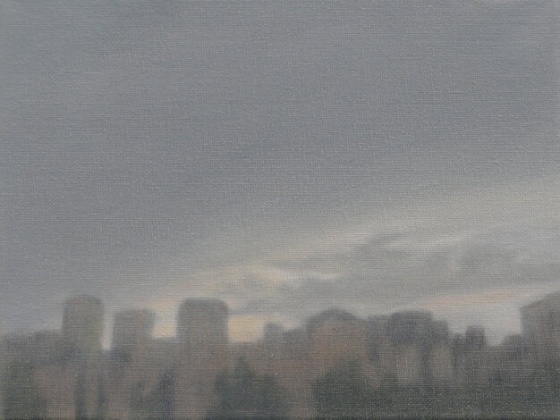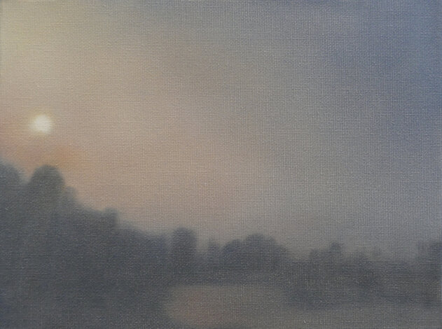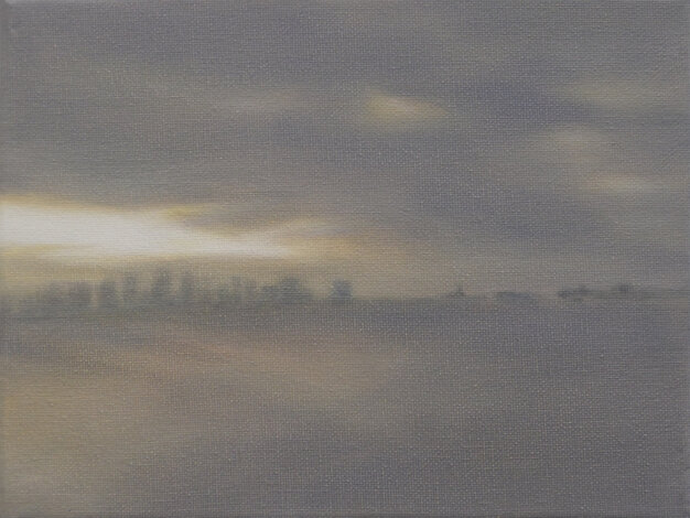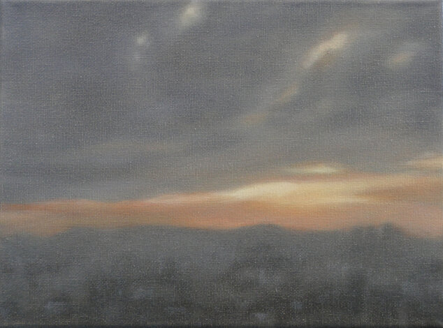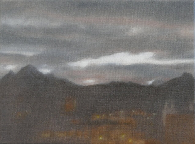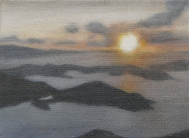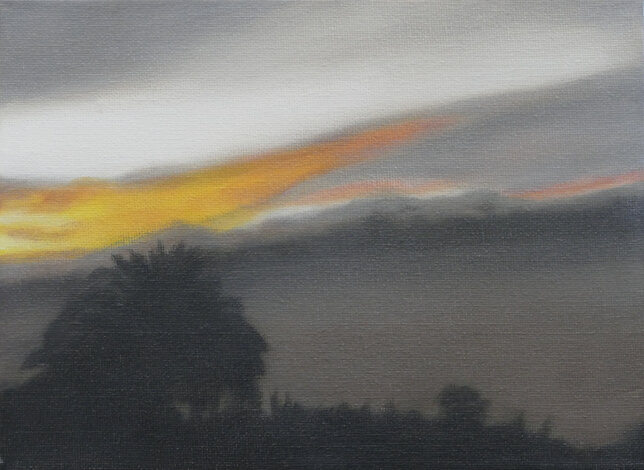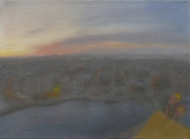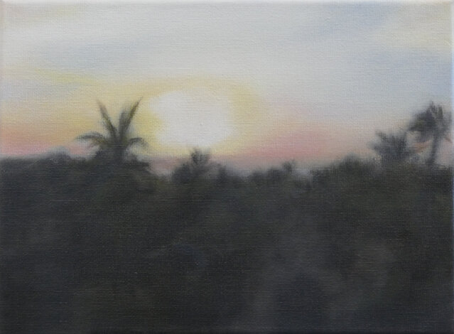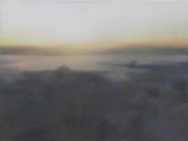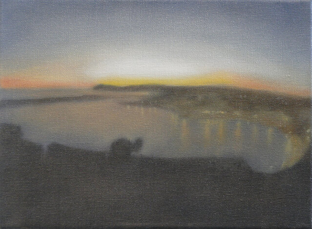 Based on this freely available online opportunity, One Day: 40 Sunrises presents the experience of sunrise on a particular day in various locations throughout the world, as experienced live through these webcams. The locations were chosen to reflect as broad a geographical spread as possible. The paintings are based on real-time screenshots grabbed from online streaming, harvested from the internet on a randomly selected day, 15 July 2020, tracking sunrise around the globe. Numerically, the 40 paintings also acknowledge the phenomenon of ‘quarantine’, a word deriving from the Italian 'quaranta giorni' ('forty days'), the period that ships were required to remain in isolation before passengers and crew could disembark during a much earlier pandemic, the Black Death.